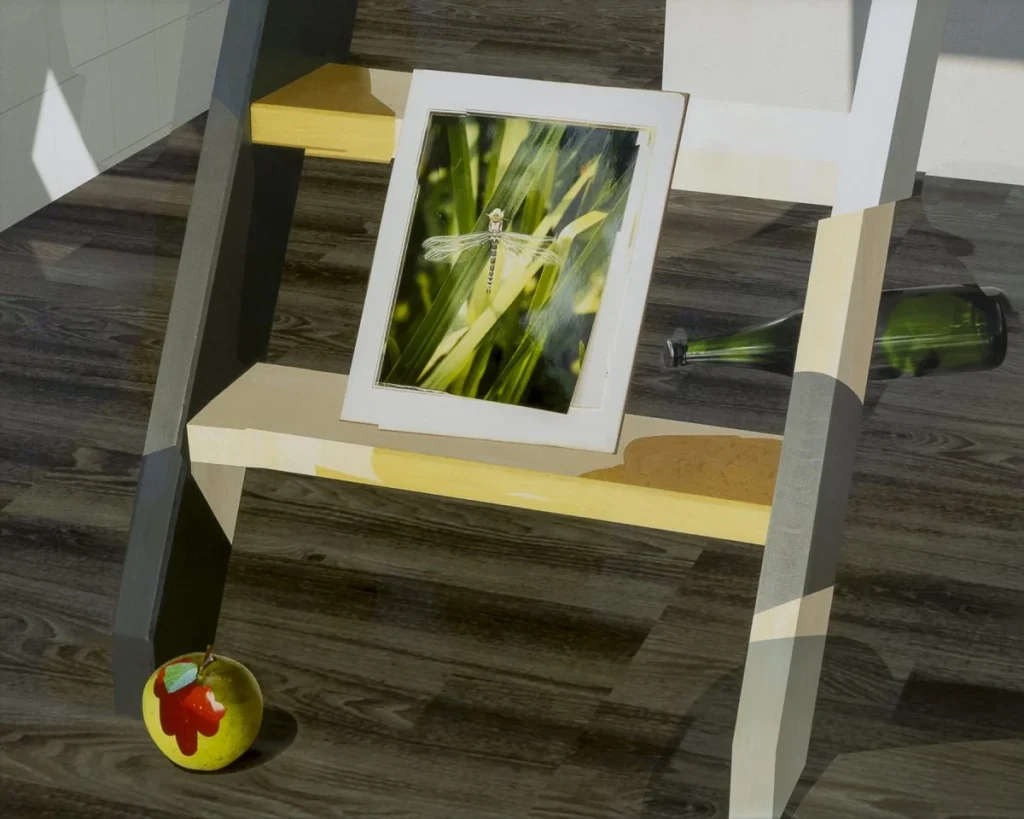 A meticulously constructed space was created based on the collision of pixel-based photographs and computer-generated imagery. By using the same perspective for both captures, the shattered fragments deviated from the photographic perspective and left their traces in the overlapping space. The work aims to construct the photographic space to visually and conceptually question the relationship between the virtual space and the physical space. The resulting photographic space builds layers and flattens down, allowing it to be familiar yet strange, fractured yet imbalanced. It remains open, traveling around the possibilities, seeking a perception of complexity in the realm of photography.